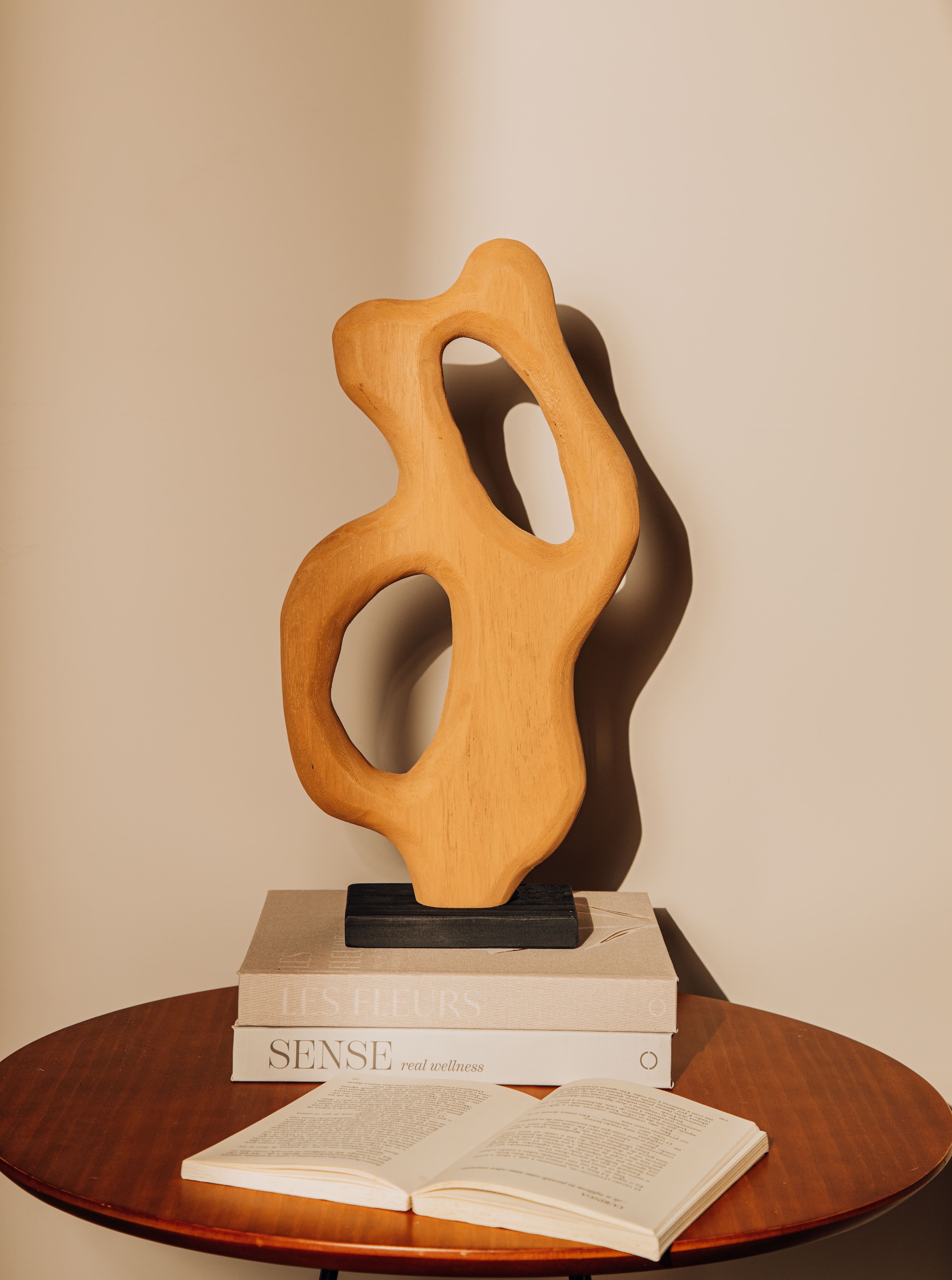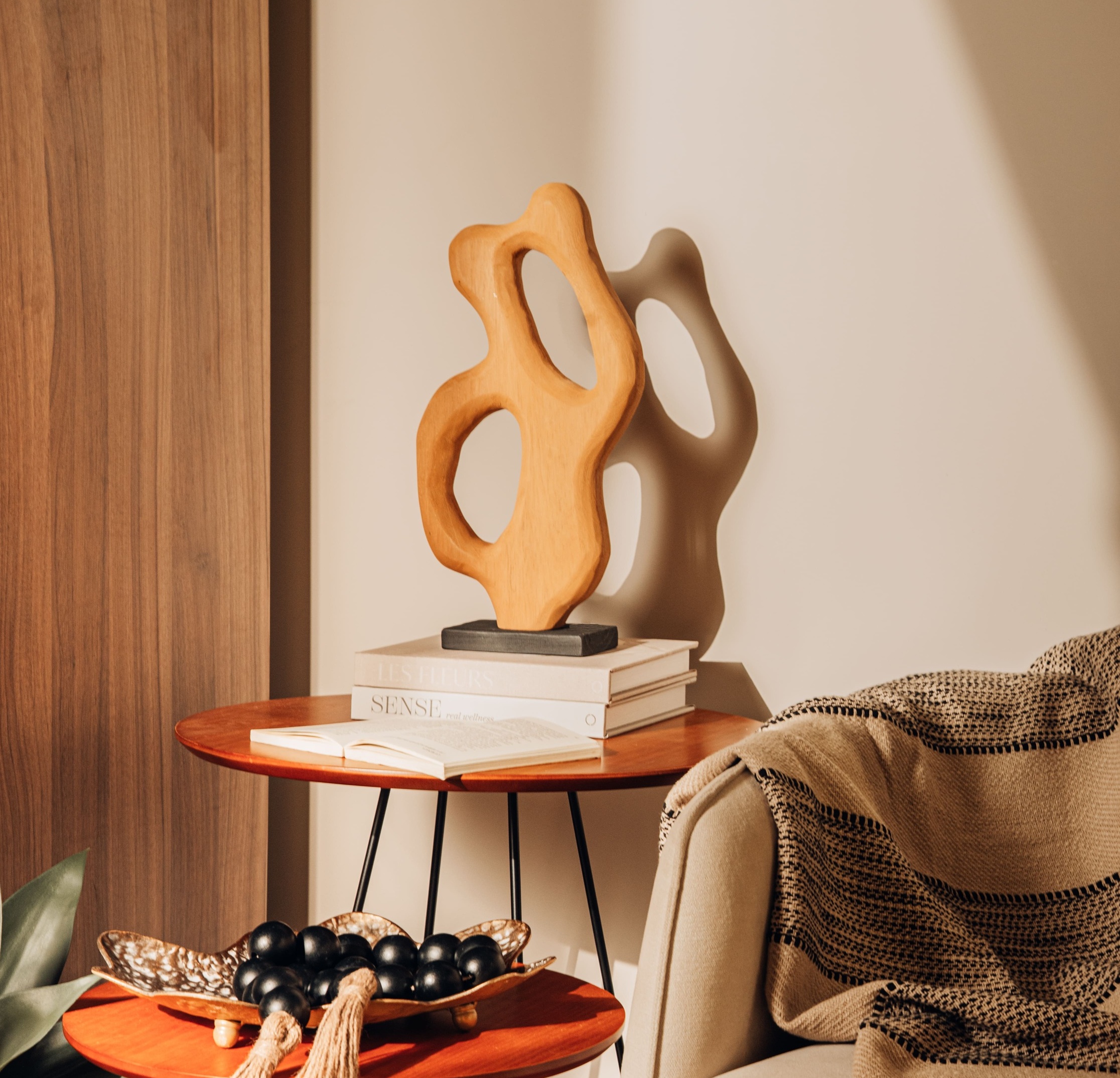 - Abstratas e Orgânicas: Peças em madeira ou as formas brancas sinuosas, que evocam movimento e modernidade, perfeitas para ambientes contemporâneos.