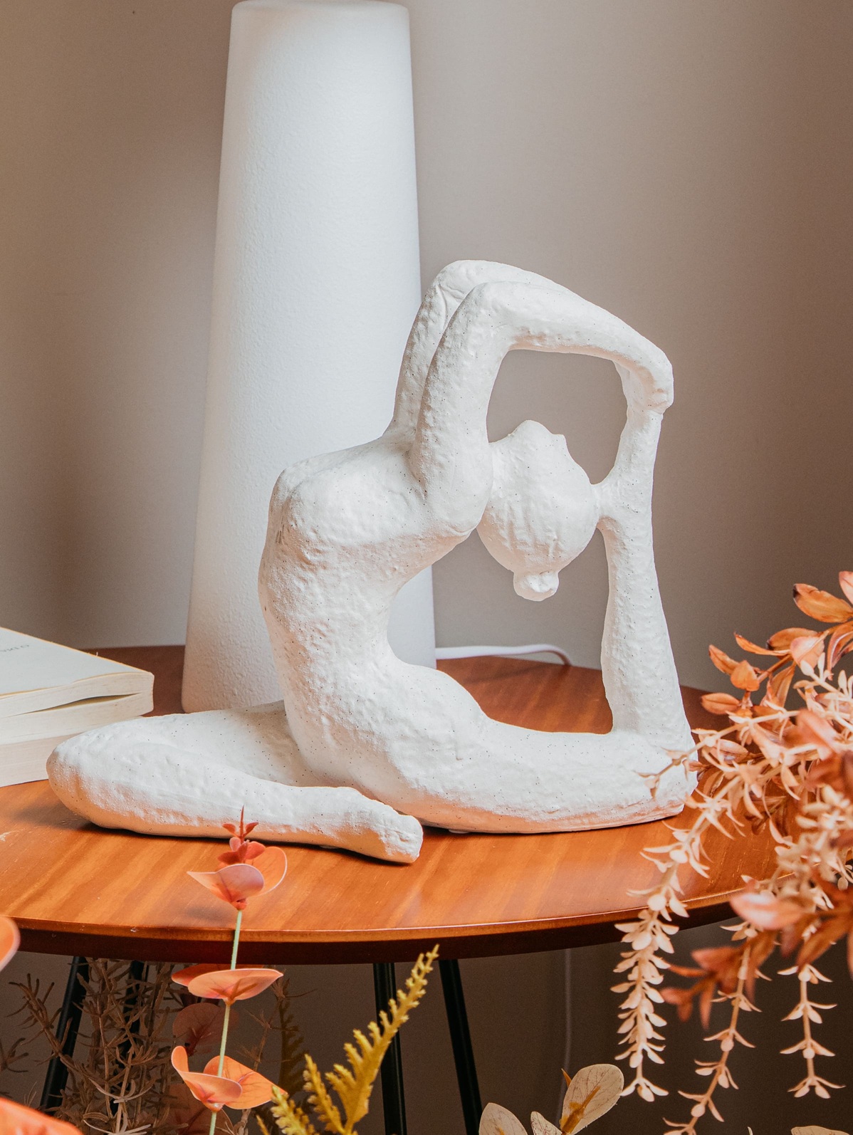 - Figurativas e Inspiradoras: Esculturas que remetem à calma e ao bem-estar, como as poses de yoga e meditação, ideais para espaços zen ou para quem busca tranquilidade.