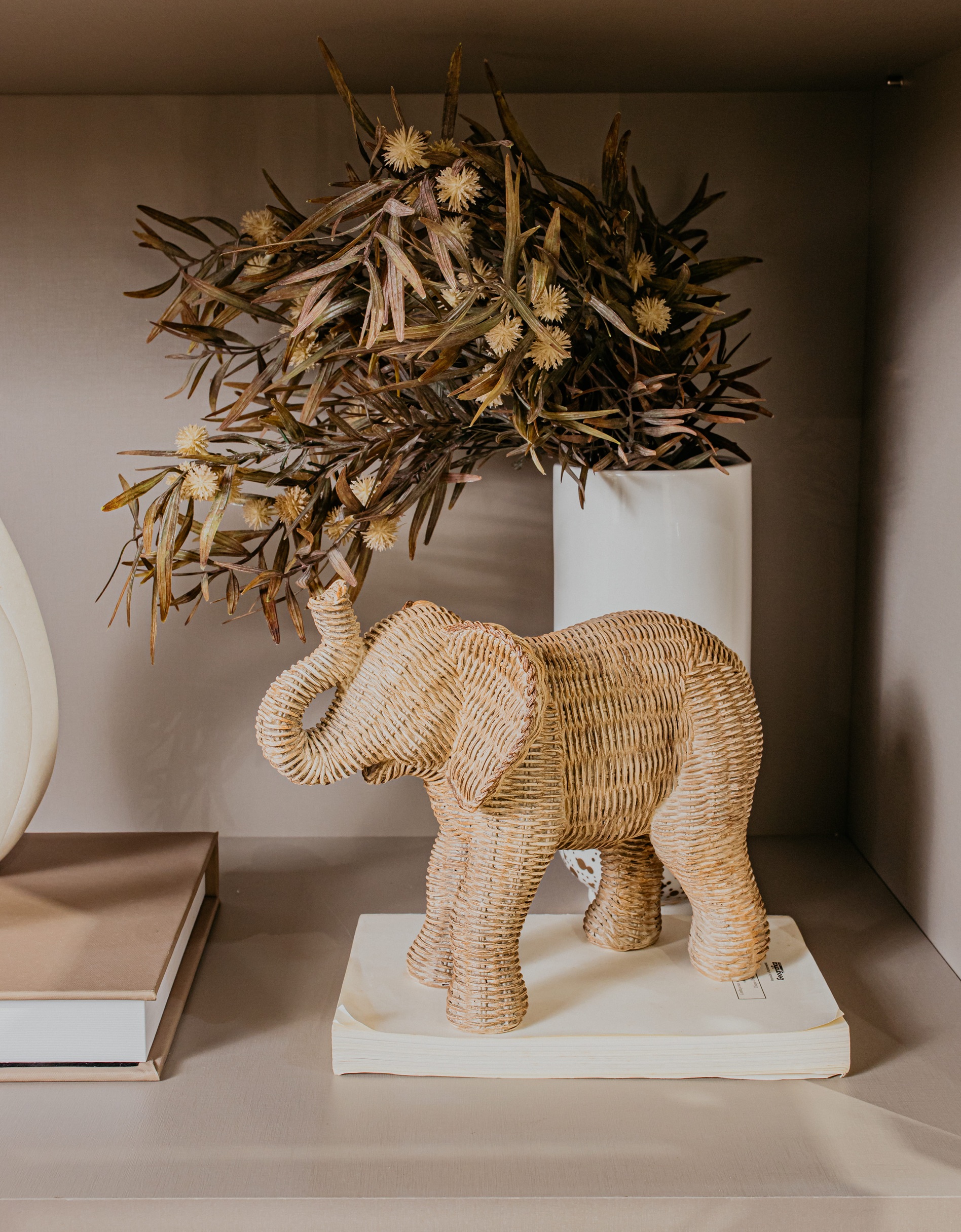 - Naturais e Aconchegantes: A delicadeza do elefante em vime, que traz o toque artesanal e a conexão com a natureza, ideal para decorações mais aconchegantes ou com apelo boho-chic.
