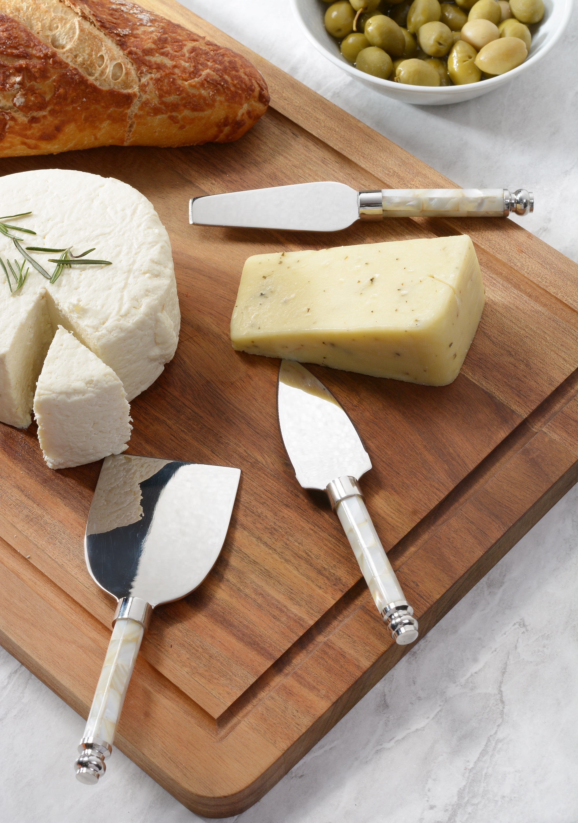 Outro destaque é a aplicação de madrepérola, que adiciona um refinamento especial à experiência de servir. A textura suave e luxuosa desse material, combinada com o brilho do aço inox, cria um conjunto que se destaca tanto pela estética quanto pela funcionalidade.