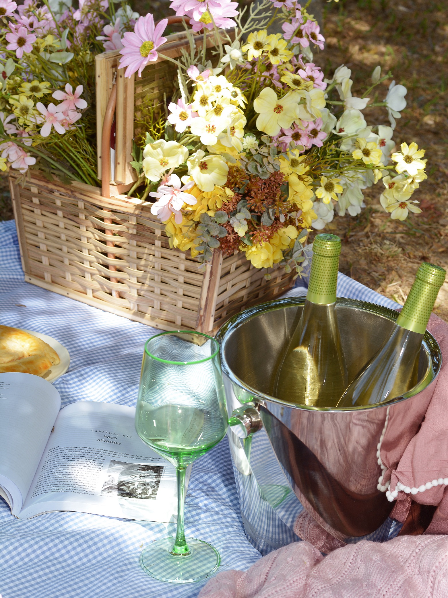 A simplicidade também pode ser sinônimo de sofisticação. Aposte em almofadas de linho e mantas de tricô para proporcionar conforto aos momentos de descanso. Para manter as bebidas geladas, o balde de gelo em aço inox adiciona funcionalidade sem abrir mão da estética. Já as taças de vidro elevam o brinde à primavera, permitindo que cada gole seja especial.